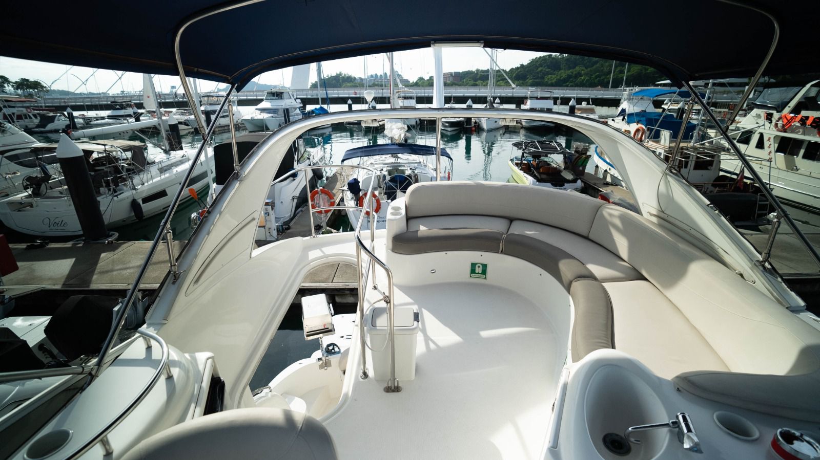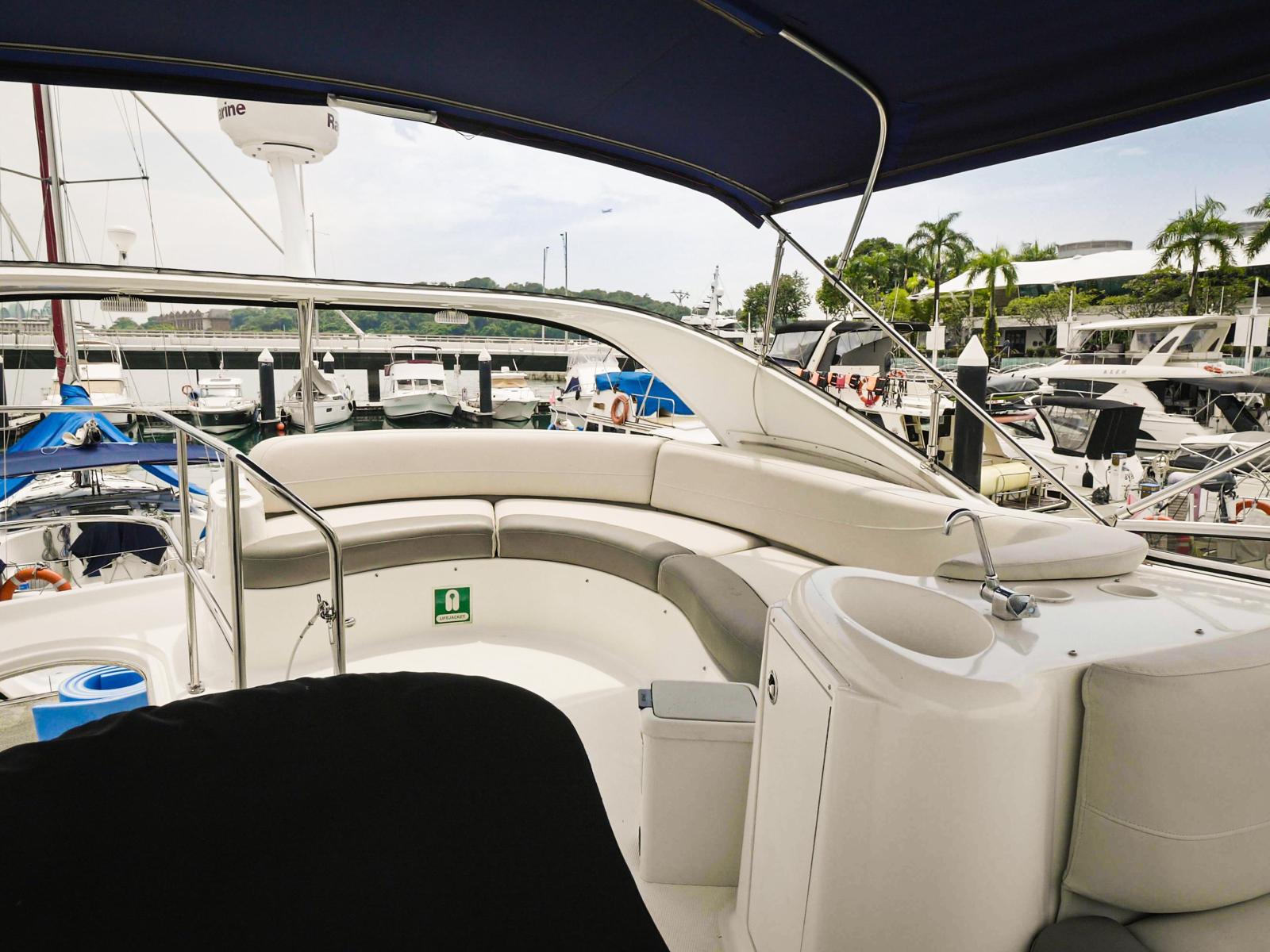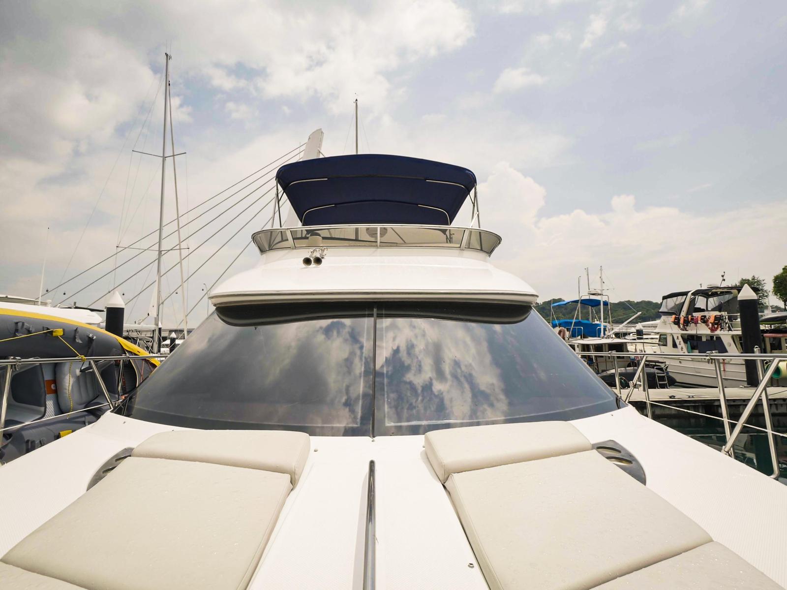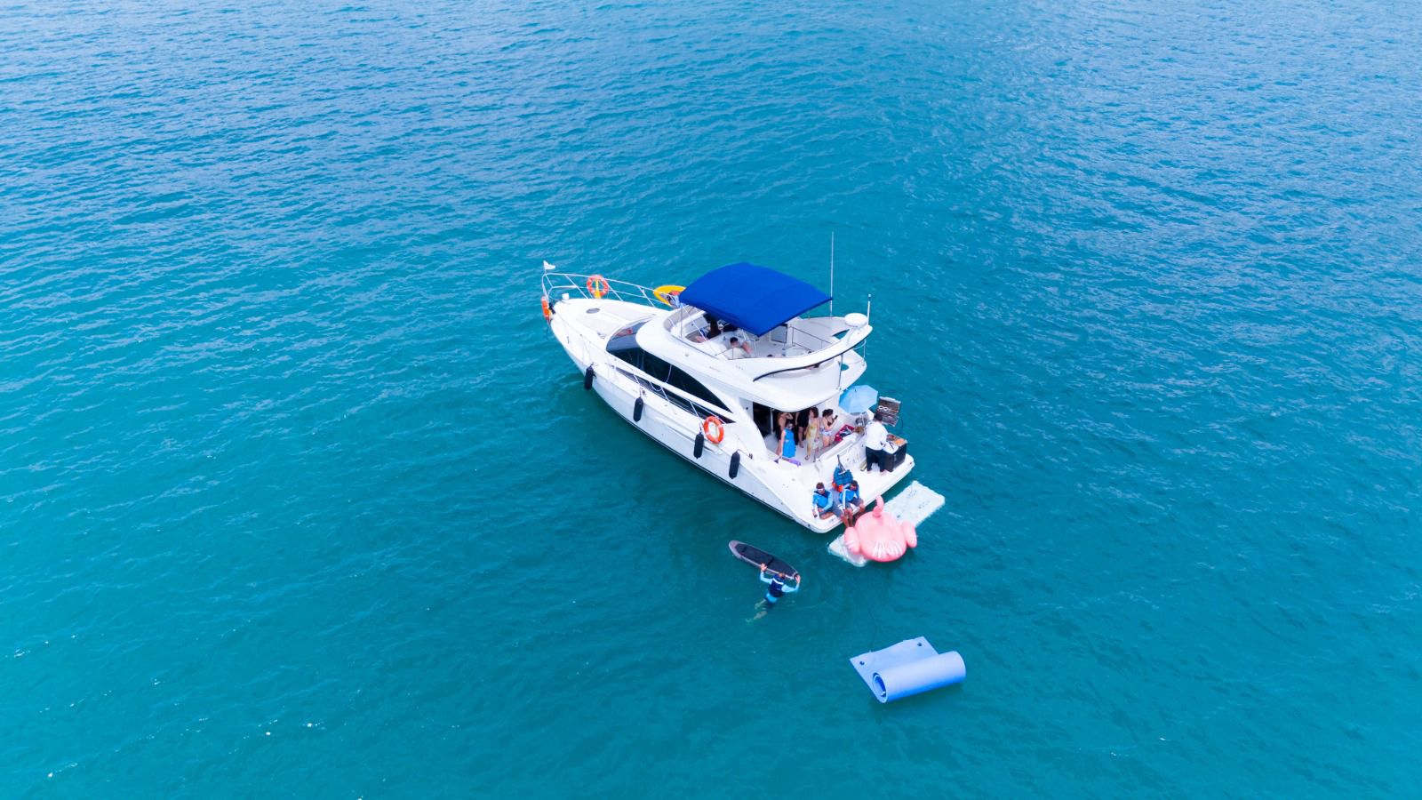 Nani Kai is a 43ft Meridian 391 Flybridge Cabin Cruiser with a 360-degree panoramic view at the fly bridge on the upper deck. This luxurious boat comes with a sea lift and can cater up to 15 guests.